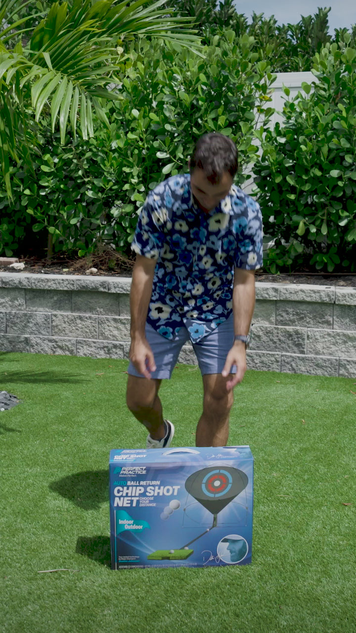 Practice chipping anywhere, anytime - no need for range with Perfect Practice Chip Shot. Includes adjustable automatic ball return, realistic grass mat and bullseye target to help improve aim, accuracy and confidence with every chip.